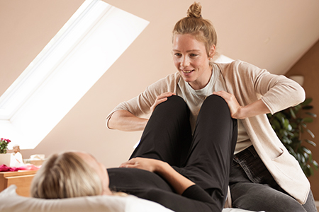 Gerade in der Schwangerschaft wirkt sich eine osteopathische Behandlung auf Mutter und Kind gleichermaßen beruhigend und zentrierend aus. Dabei geht es darum, den Dialog zwischen Mutter und Kind zu fördern.