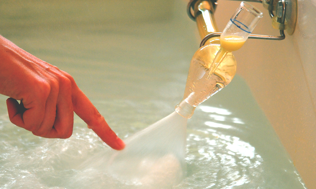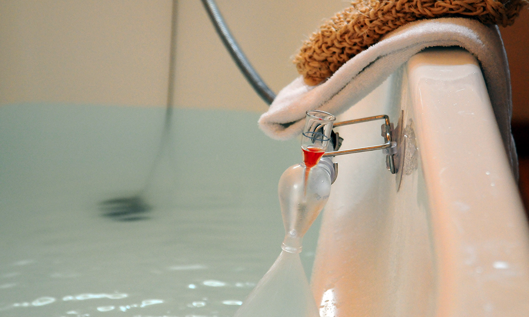 Diese Bäder sind keine Ölbäder im herkömmlichen Sinne. Normalerweise schwimmt der Ölfilm ja meist innerhalb kurzer Zeit als dünne Schicht auf der Wasseroberfläche. Werner Junge hat in den 1930er-Jahren eine spezielle Glasarmatur erfunden, mit der sich das Öl beim Einlaufen des Wassers in die Wanne in feinste Teilchen zerstäuben lässt. Es bleibt stundenlang stabil im gesamten Wasserkörper verteilt und schmiegt sich wie eine warme Hülle um den ganzen Körper. Überdies wird die Haut exzellent gepflegt und durchblutet, das Abwehrsystem gestärkt und der Wärmeorganismus aktiviert. Öldispersionsbäder wirken besonders intensiv – auf den ganzen Menschen.