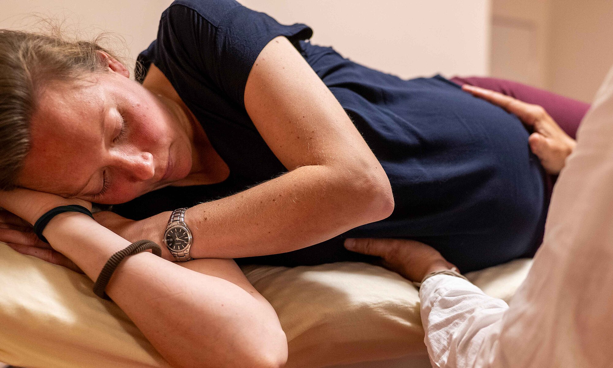 In der Behandlung wollen wir den Raum öffnen für einen Dialog zwischen Mutter und Kind, für eine gegenseitige Wahrnehmung, eine verbesserte Durchblutung im ganzheitlichen Sinne. Oft lassen sich damit auch vorzeitige Wehen behandeln. Aber vorrangig geht es um eine beziehungsgeleitete Schwangerschaft und Geburtsbegleitung auf der Basis von Vertrauen.