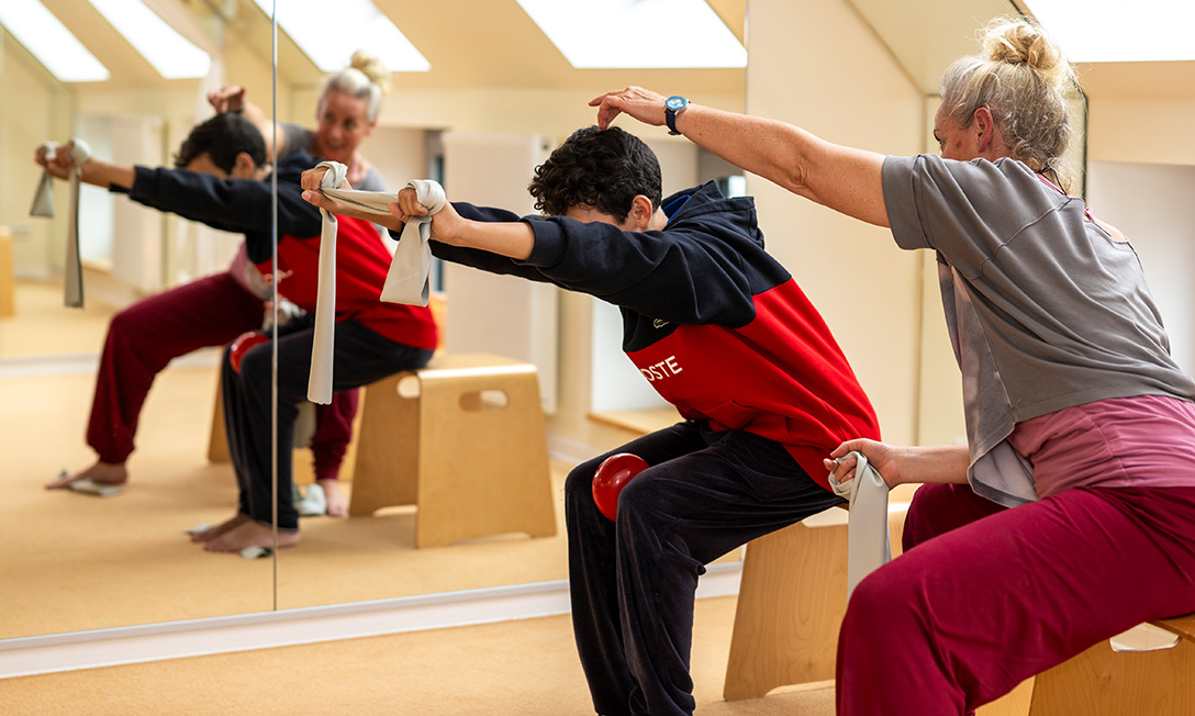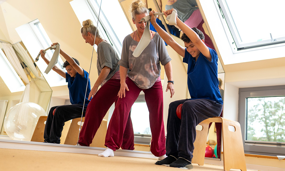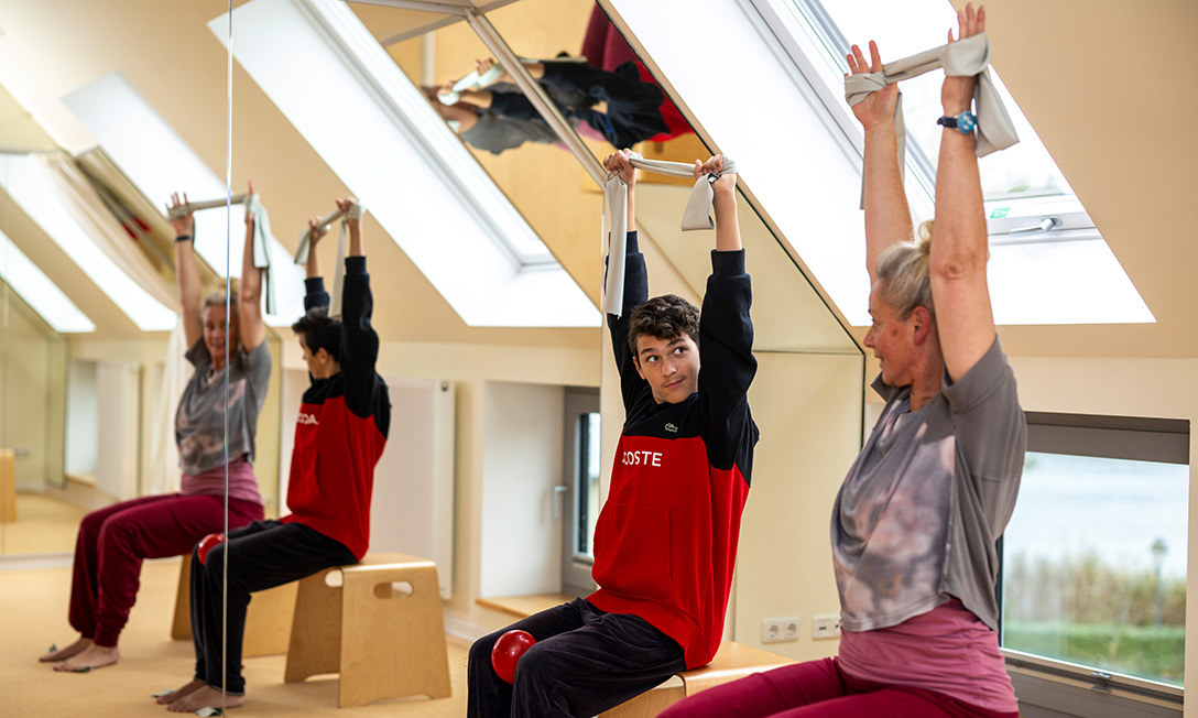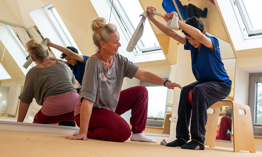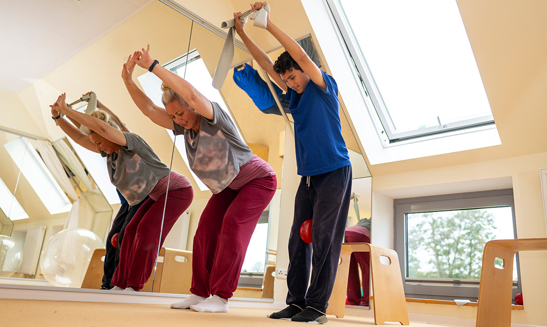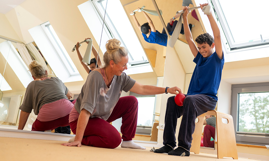 Rota-Therapie ist eine neurophysiologische Form der Physiotherapie. Um Spannung im Körper über den Weg des zentralen Nervensystems auszugleichen, bedarf es der Rotation in Form von Bewegungsübungen um alle Körperachsen im Raum.